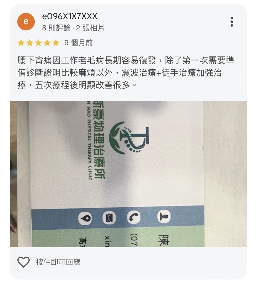 新豪物理治療-物理治療所,震波治療,高雄物理治療所,三民區物理治療所